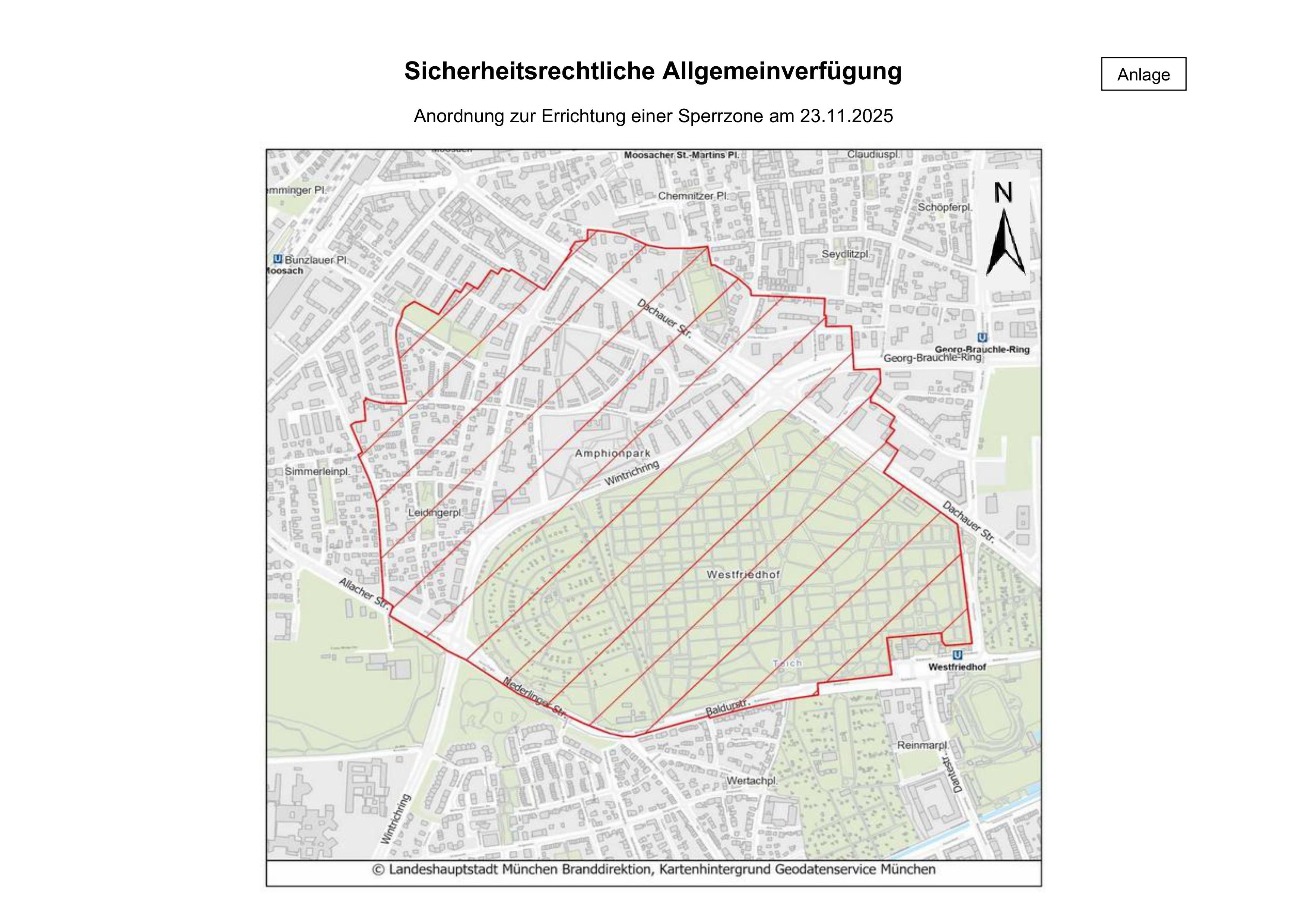 Η ζώνη εκκένωσης καλύπτει μεγάλο τμήμα του Westfriedhof καθώς και τις γειτονιές που βρίσκονται βόρεια του νεκροταφείου. Οι αρχές έχουν χαρτογραφήσει με ακρίβεια τον χώρο και καλούν τους κατοίκους να ακολουθήσουν τις οδηγίες χωρίς καθυστερήσεις.